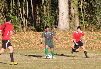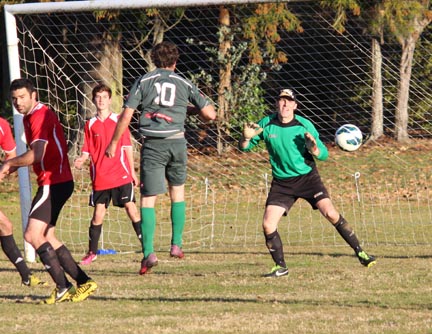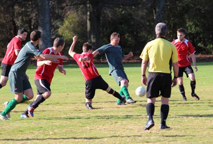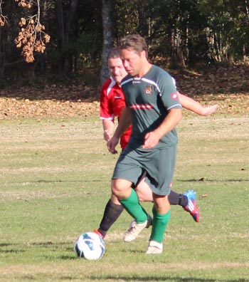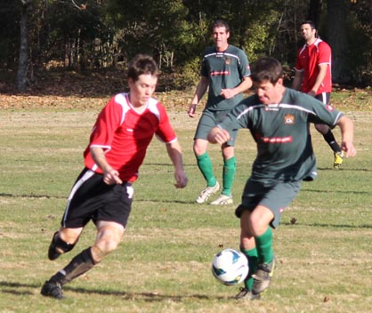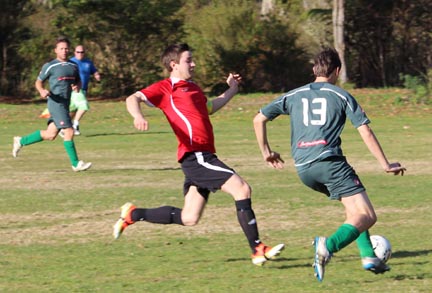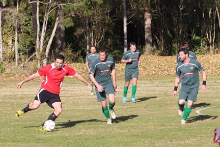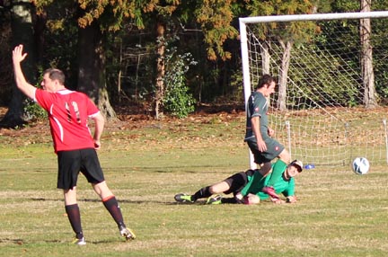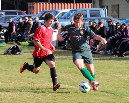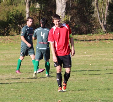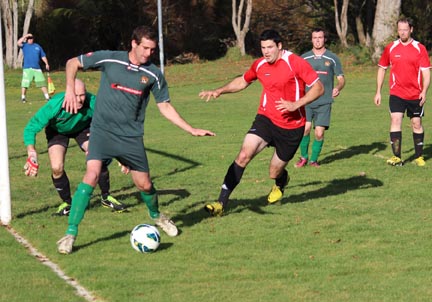 | Grahame Sims is in the Kawerau six yard area. He looks to set someone