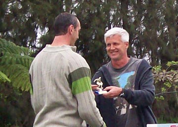 Jeremy Hawkes is pleased to get the Sportsmanship trophy. Skins