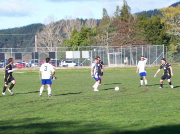Bazza, playing in a three man midfield, puts the ball through the
