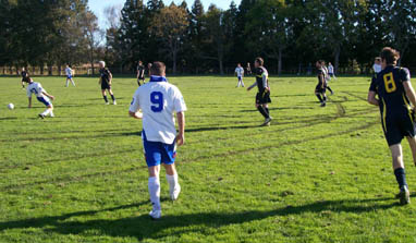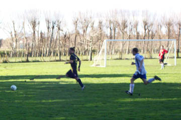 Pressure on the Old Blues goal. Andy keeps Jordan at bay.