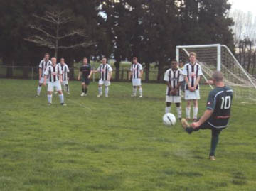 Another free kick. Wett and Ben lay their plans. The wall and Giles